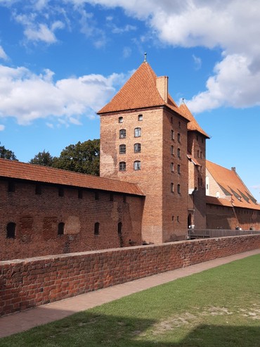 Am zweiten Tag ging es nach dem Frühstück und dem Reisesegen nach Pelplin. Das ehemalige Zisterzienserkloster und heutige Kathedrale Mariä Himmelfahrt des gleichnamigen Bistums (bis 1992 Bistum Kulm) war im August 1945 Ort des Treffens von Bischof Kaller mit dem polnischen Primas August Kardinal Hlond. In Marienburg (Malbork) besichtigten wir die Burg, ehemals Hauptsitz des Deutschordenstaates. Eine Gästeführerin führte uns anschaulich durch das riesige Burggelände, welches nach Zerstörung durch sowjetische Truppen wieder sehr schön aufgebaut wurde.