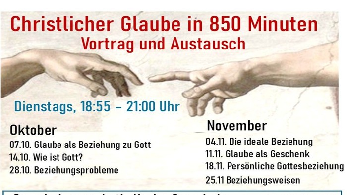 Erfahren Sie an sieben Abenden, was christlichen Glauben ausmacht und kommen Sie über das Gehörte und über sich selbst mit anderen Menschen ins Gespräch.