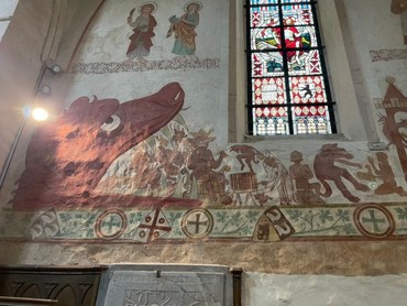 Am Freitag wurde das „Weite suchen“ in der Kirche von Behrenhoff zu einem Blick nach innen. Pastor Willfried Knees führte uns mit lebendigen Worten in die alten Malereien im Kircheninneren ein,