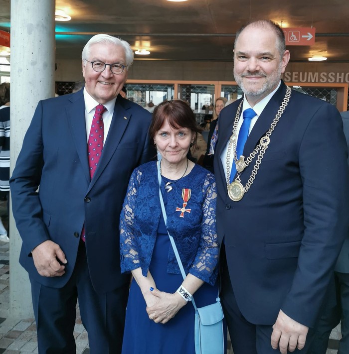 Unter den Ausgezeichneten ist diesmal auch unser Gemeindemitglied Martina Steinfurth. Wer, wenn nicht gerade Sie hat, diese Anerkennung verdient. Ist sie doch in vielen Gremien in der Gemeinde, der Stadt und weit darüber hinaus wirksam tätig. Es müssen nicht alle aufgezählt werden diese Dienste und Tätigkeiten. Aber unter den vielen gibt es einen ganz besonderen, wirkungsvollen, ehrenamtlichen Dienst, den „Lazarusdienst“. Noch einmalig in Deutschland!