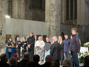 Begegnung mit Vertretern der Ökumenischen Pilgerinitiative Vorpommern e.V. in der Kulturkirche St. Jakobi in Stralsund.