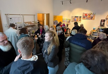 Begegnung nach der Hl. Messe beim Stehcafe, organisiert vom Afrikakreis und der Tourismusseelsorge.