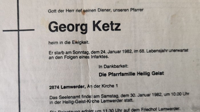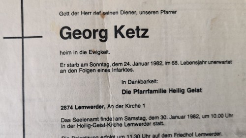 Als Pfarrverwalter nahm er dort auch seinen Ruhesitz. Am 24. Januar 1982 ist er dort plötzlich an den Folgen eines Herzinfarktes verstorben.