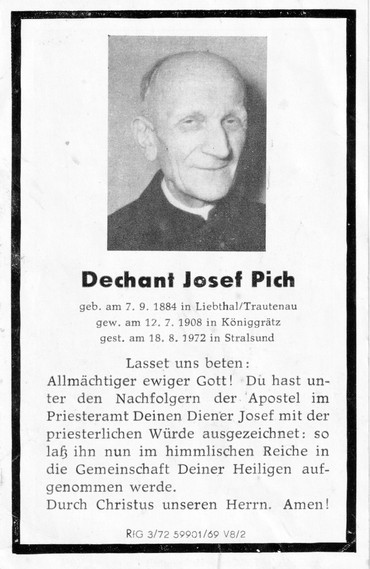 Ich kannte ihn gut als Ministrant, denn "meine" Frühmesse war immer samstags um 6:00 Uhr, die von Dechant Pich zelebriert wurde. Am Ende jeder Messe bat er vor dem Segen um eine glückliche Sterbestunde. (Damals, mit 12 oder 13 Jahren, war ich etwas verwundert über diese Bitte).