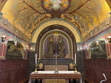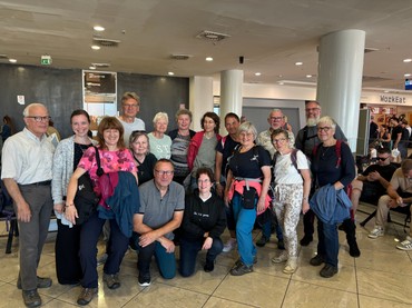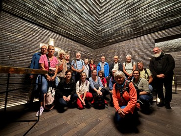 Am 08.09.2025 trafen sich auf dem Flughafen BER 20 Pilger sowie unser Pfarrer Johannes Schaan, um gemeinsam mit dem Flug nach Neapel die Pilgerfahrt zu beginnen. Wir waren eine gemischte Gruppe, was sowohl die Religionszugehörigkeit (katholisch, evangelisch, konfessionslos), die Heimatorte (Stralsund, Anklam, Rügen, Berlin, Hamburg, Eberswalde) als auch das Alter (Anfang 40 bis Mitte 70) betraf. Am Flughafen Neapel wurden wir von unseren „Guides“ Ellen und Christoph Nemitz sowie Sr. Federica in Empfang genommen, die uns mit drei Kleinbussen in das ca. 100 km entfernte San Vincenzo al Volturno fuhren. Da es bei der Ankunft bereits dunkel war, konnten wir die wunderschöne Klosteranlage erst am nächsten Morgen bewundern. Wir wurden von den 7 Benediktinerinnen überaus herzlich begrüßt, und die Wärme und Freundlichkeit dieses Empfangs ließ uns die lange Anreise vergessen und uns sofort heimisch fühlen. Der Tisch im großen Speisesaal war festlich gedeckt, und uns wurde ein köstliches 3-Gänge-Menue serviert. Hier sei noch einmal besonders angemerkt, dass die Versorgung während der gesamten Pilgerzeit sehr großzügig und überaus schmackhaft war, was wir besonders Schwester Martha verdanken durften, die in dieser Woche den Hauptdienst in der Küche versah.