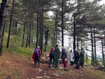 Am nächsten Tag besichtigten wir vormittags die große Ausgrabungsstätte gleich neben dem heutigen Kloster, wo sich im frühen Mittelalter eines der bedeutendsten Klöster der damaligen Zeit befunden hatte. Dann fuhren wir mit unseren Kleinbussen bis auf 1000 m Höhe und wanderten die restlichen 850 Höhenmeter auf den Gipfel des Monte Marone. Alle Pilger erreichten das Ziel und machten dann am Gipfelkreuz stolz das Beweisfoto.