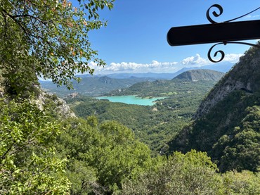 Auch die nächste Wanderung, die zum Monte San Michele (Toblerone) führte war anspruchsvoll, da es wieder auf unbefestigten Geröllwegen sehr steil bergauf und bergab ging. In der kleinen Felsenkapelle beteten wir gemeinsam aus dem Stundenbuch die Sext. Wir besichtigten noch die Höhle des Eremiten und genossen neben der herrlichen Aussicht auch den frisch zubereiteten Espresso, bevor es wieder abwärts ging.