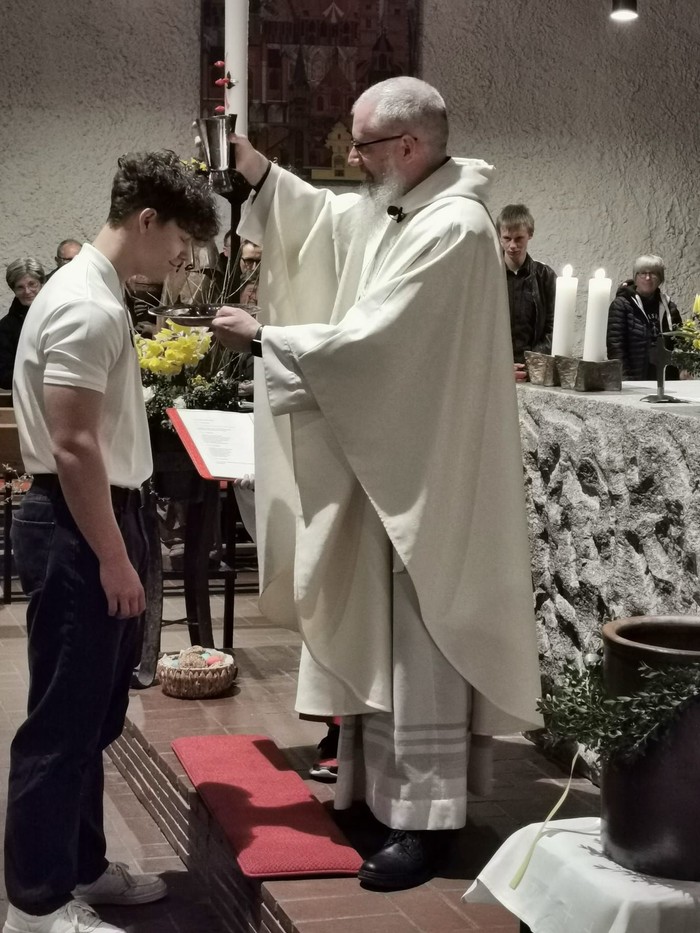 In der Osternacht wurden in unserer Pfarrei zwei Erwachsene getauft. In Stralsund Jonas und in Bergen auf Rügen Lennard. Diakon Werner Roß berichtet aus Bergen: