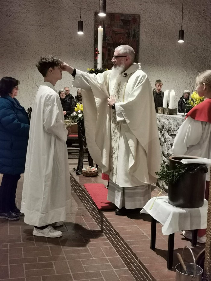Wir feierten die Auferstehung unseres Herrn und erfuhren "hautnah" seine Nähe, als Lennard Jacob die Taufe empfing und in der Firmung die Stärkung des Heiligen Geistes.