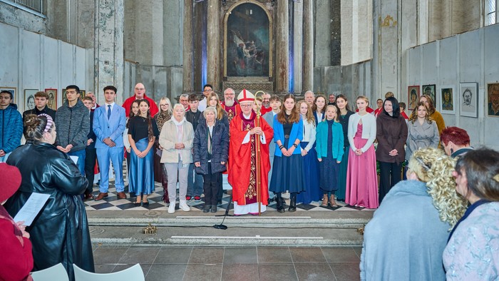 Ein Fest jagte das andere. Am Freitagabend hatten wir mit unserem Erzbischof Dr. Heiner Koch die Jubiläumsfeier anlässlich des 250. Geburtstags der katholischen Gemeinde in Stralsund und Vorpommern erlebt. Am Samstag, dem 8. November 2025, spendete er dann 22 Personen innerhalb der Hl. Messe wieder in der Kulturkirche St. Jakobi in Stralsund das Sakrament der Firmung. Schon am Vorabend hatte er nach dem Theaterstück der Jugend, bei dem einige der Firmlinge mitgespielt hatten, seine Begeisterung darüber ausgedrückt. Es war dann wirklich ein begeisterndes Ereignis. Viele Angehörige, Freunde und Gemeindemitglieder waren gekommen und füllten die Jakobikirche ein weiteres mal. Die Familien der Firmlinge zusammen mit der Jugend machten Musik und ließen das alte Gebäude in frischem Klang erbeben. 19 Jugendliche und drei Erwachsene wurden durch den Empfang der Firmung mit dem Heiligen Geist besiegelt und bekräftigt, damit sie nun als erwachsene Christen Zeugnis für Christus in der Welt geben können.